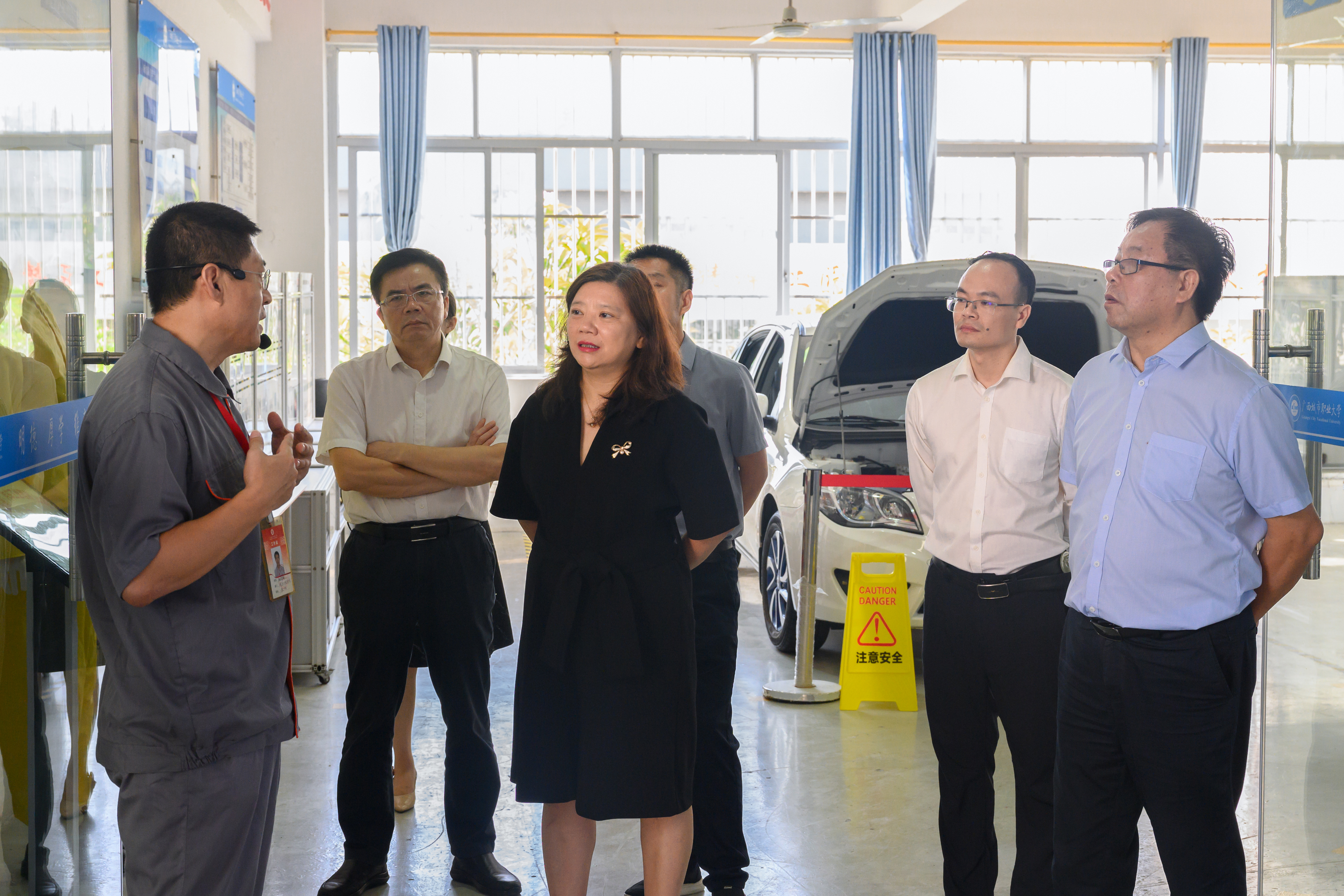 教育部教育质量评估中心主任范唯一行在汽车工程学院新能源汽车实训中心参观交流