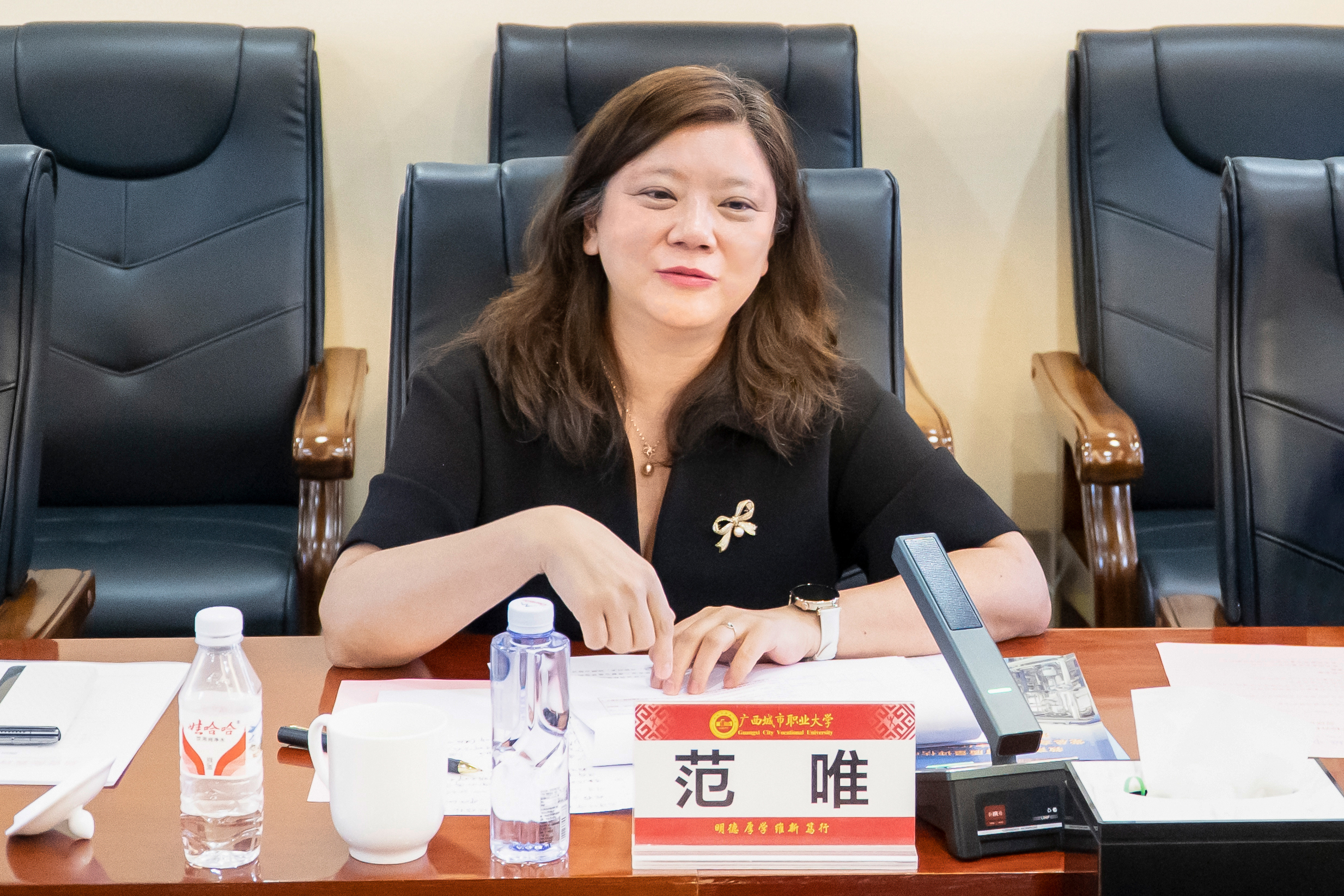 10月25日,教育部教育质量评估中心主任范唯,教育部教育质量评估中心评估处副处长李军等一行到我校调研指导职业本科教育教学工作并召开调研会,自治区教育厅党组副书记、副厅长、一级巡视员黄雄彪,自治区教育厅职业教育与成人教育处处长覃壮才,广西教育研究院职业教育研究所所长李春鹏,学校董事长宁德君,校长李中华等陪同调研并参加座谈会。