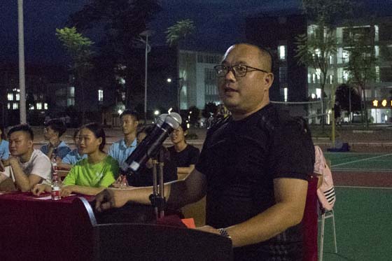 闭幕式开始,校团委办公室主任杨成旺,学工部宁钢华,体育教研部农国艺、沈国武,教育学院黄居伟五位老师出席。校歌《心灵的方向》在篮球场奏响。杨成旺老师为本次闭幕式致辞,他说:“为期两周的‘九大组织博胜杯篮球赛’圆满结束。本届比赛,运动员努力拼搏,观众文明助阵,裁判公平判罚。赛出了水平,赛出了成绩,赛出了友谊。我们看到了同学们奋发向上,朝气蓬勃的新时代风貌。希望同学们能把这个团结拼搏,勇于奋进的精神保持下去,促进全面的健身运动。”