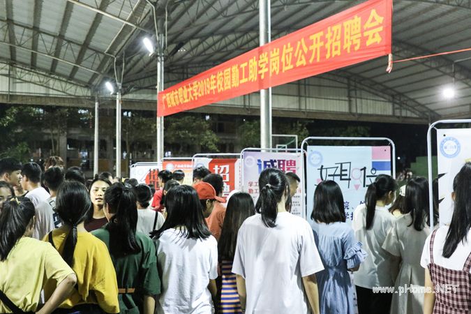 勤工助学是提高学生综合素质和资助家庭经济困难学生的有效途径,为更好的让家庭经济困难的同学更好地完成学业,9月19日晚,我校分别在崇左校区、空港校区灯光球场同时举办2019年勤工助学岗位公开招聘会。
