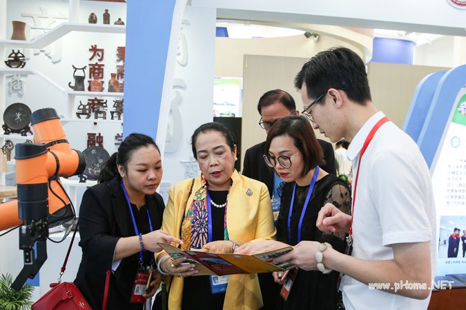 整个展位以视频、图文的形式展示了学校概况、专业建设、产教融合、科技创新等各方面的特色。展位内展示有工业机器人泡茶、花山元素艺术作品、现代科技VR虚拟体验区、3D创新创意研发中心等。中国人好以茶会友,工业机器人泡茶吸引了泰国、越南、马来西亚等众多东盟国家的外宾及国内嘉宾前来展位内驻足与咨询。我校与马来西亚独大教育中心等进行了详细的交流和沟通,双方均表示希望开展深层次国际交流与合作,并期待取得更好的合作发展。