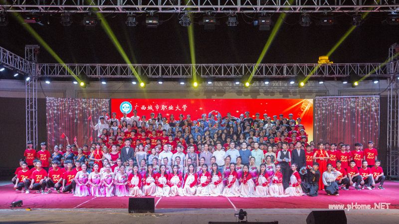 最后,晚会临近尾声,崇左校区教育学院师生带来《共筑中国梦》,空港校区大学生艺术团和现场所有师生共同演绎《我和我的祖国》,表达了师生们对祖国深深的热爱。