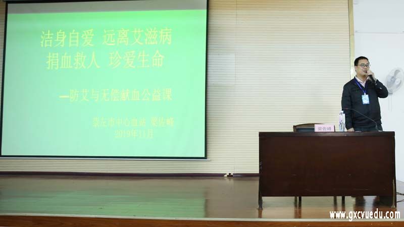 为进一步增强学生对艾滋病的防范意识,普及艾滋病基本防治知识,11月29日下午,我校邀请到崇左市中心血站副站长梁佐峰在空港校区厚学楼阶梯三教室进行防艾滋病与无偿献血宣传讲座。各学院学生代表聆听了本次讲座。