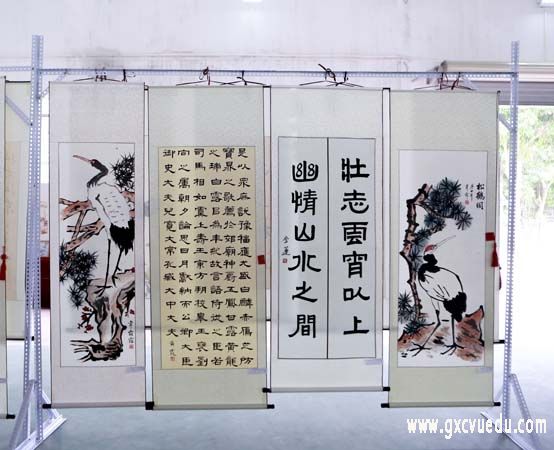 为提高同学们的艺术创作水平,弘扬中国传统文化,7月11日,我校艺灵书画协会在空港校区新体育馆举行以“笔赞青春 墨颂年华”为主题的书画毕业展。此次书画毕业展邀请了广西机电职业技术学院翰迹书画协会、桂林理工大学博艺书画协会等高校学子到我校交流学习。