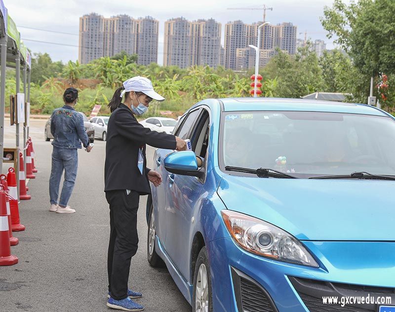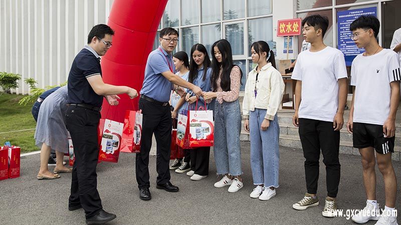 当天,学校校长李中华,党委宣传部部长、执行副校长黄良佳,商学院院长蒙振海,汽车工程学院院长孙振保等领导来到报到现场迎接新生,亲切慰问工作人员和志愿者,给新生发放开学物资。