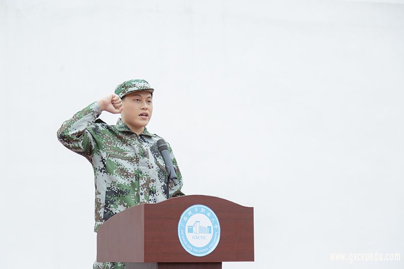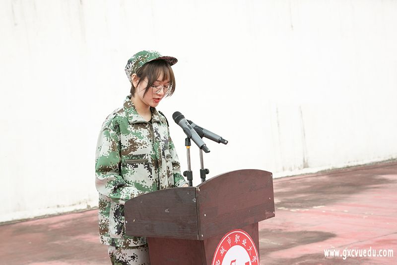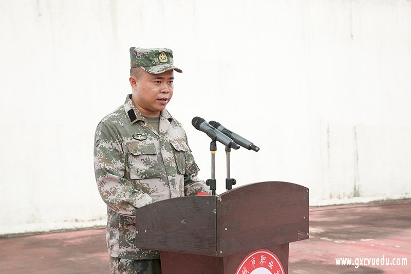 接着,崇左校区教官代表覃敏庆和空港校区教官代表吴启耀分别发言,他们希望同学们穿上军装的时候,就要把自己的人生追求和祖国的命运紧紧联系在一起,既然选择了军训,我们就应该勇敢地锤炼自己,不畏艰难、磨砺坚强的意志。军训期间,同学们要把自己当作一名军人,严格要求自己,发扬不怕苦、不怕累的精神,克服困难,圆满完成军训任务;要学会关心集体,关爱他人,建立深厚的战友情、同学情,增强班级荣誉感;军训期间同学们要做到令行禁止,严格服从教官、老师以及学校的安排,增强集体主义精神和组织纪律观念。