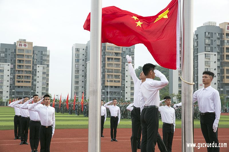 为庆祝新中国成立71周年,献礼伟大的祖国,致敬中国人民解放军,大会开始前,全体师生举行了隆重的升旗仪式。