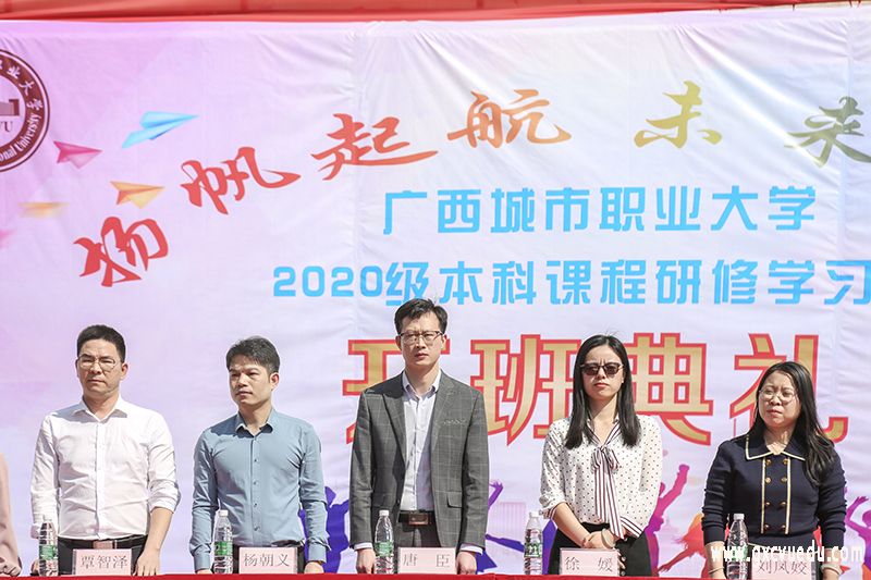 10月21日,我校在崇左校区田径场和空港校区分别举行2020级本科课程研修班开班典礼。汽车工程学院院长孙振保,智能工程学院院长余金永,校务委员、教务处处长徐媛,校务委员、管理学院院长唐臣以及各专业学科带头人和部分骨干教师等人出席了本次的开班典礼。