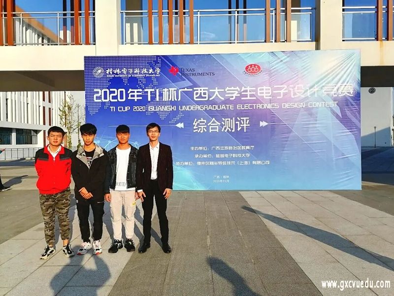 大学生电子设计竞赛主办单位为广西壮族自治区教育厅、承办单位为桂林电子科技大学、协办单位为德州仪器半导体技术(上海)有限公司。比赛历时4个月,校内优中选优,校外同台评测,智能工程学院学子18应用电子技术专业刘传涛、刘慧年、李庚阶三位同学在教师李其阳、甘新泉的指导下,成功入围最后的封闭式比赛并荣获一等奖!
