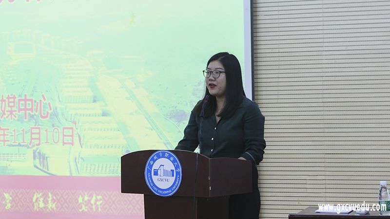 赵老师与现场师生共同分享了学校2005—2020年的照片集,与大家一起回顾15年来我校风雨历程发展史,从创办之初的风雨飘摇到今日的精英荟萃;从“相思林”的辛勤耕种到现在的枝繁叶茂;从2016年崇左校区的“破土动工”到2017年的“举家搬迁”等,通过图片展示了我校历年来获得的一些重要荣誉、发展变迁以及近年来丰富多彩的校园文化生活。她提到,校园文化是一座学校的发展灵魂和根基,校园的每一个角落都蕴含着博大精深的民族文化,都需要我们去发现与体会,特别是作为一名宣传工作者,我们要深入了解校园文化的内涵,为校园建设宣传起推动作用。