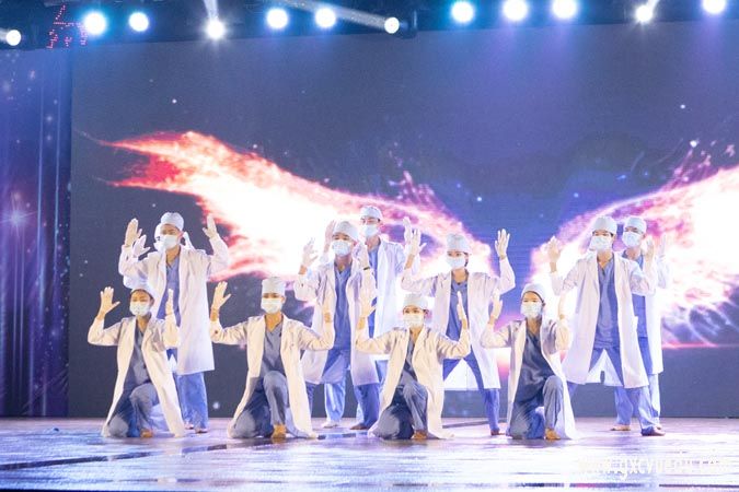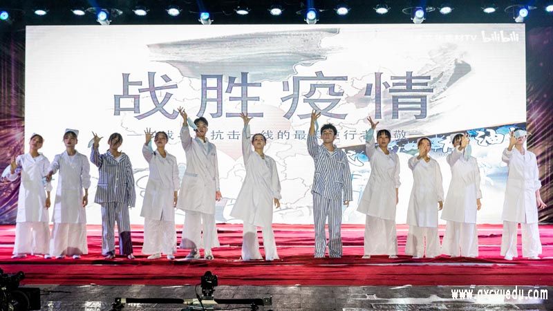 在韩舞《Tempo》的表演中,强劲有力的舞蹈被聚光灯团团包围,加上音乐的加持直接点燃了现场的氛围;大学生艺术团带来的朗诵《致最美逆行者》,字正腔圆的语调、热情饱满的声音,诠释着对抗“疫”英雄崇高的敬畏之心;小组唱《坚信爱会赢》,男女声的默契配合,一字一句唱出了对未来美好的祝愿……