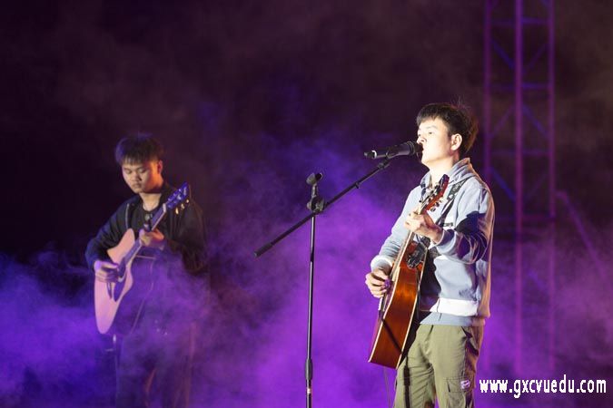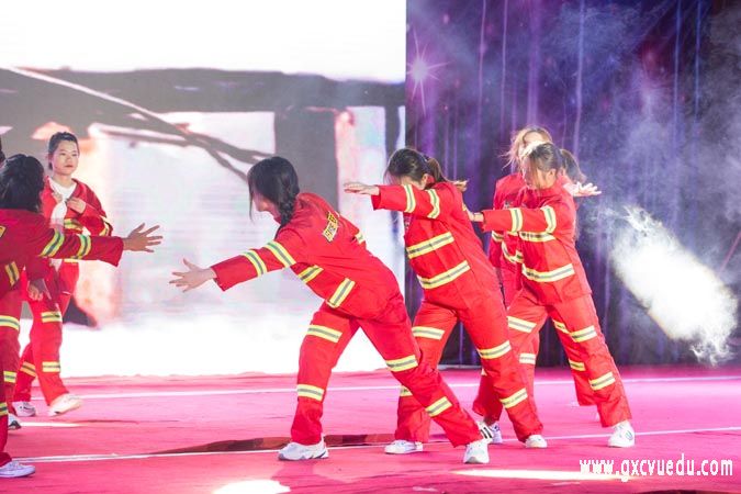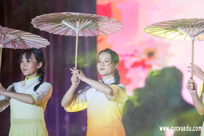崇左校区晚会分为“舞动青春筑梦开云(中国)”“不忘初心未来可期”两个篇章共18个节目,节目包括有现代舞、爵士舞、古典舞、武术表演、小组唱、民谣等,为师生们带来了一场视觉与听觉的盛宴。