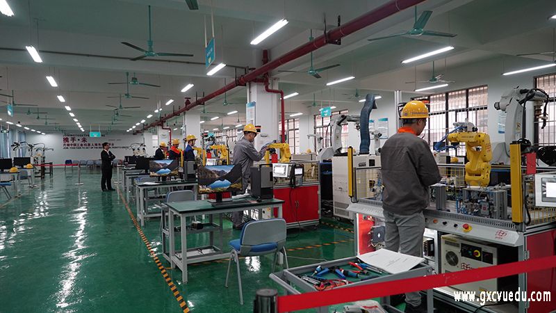 考试过程中考生们认真完成理论考试,实操考试穿上实训服,带上安全帽,考生们对工业机器人进行认真的调试、操作、编程,真正能做到学以致用。