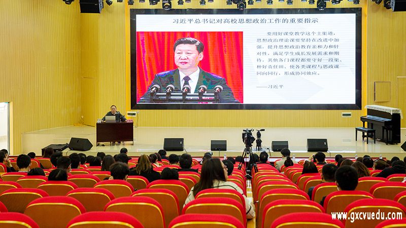 为贯彻落实习近平总书记在高校思想政治理论课教师座谈会上的讲话精神,2月2日,我校于崇左校区演奏大厅开展课程思政示范课观摩活动。本次活动,特邀广西财经学院管理科学与工程学院物流管理系主任副教授周永明、工商管理博士汪振纲进行授课,全体教师参加培训,扶绥校区设视频分会场。