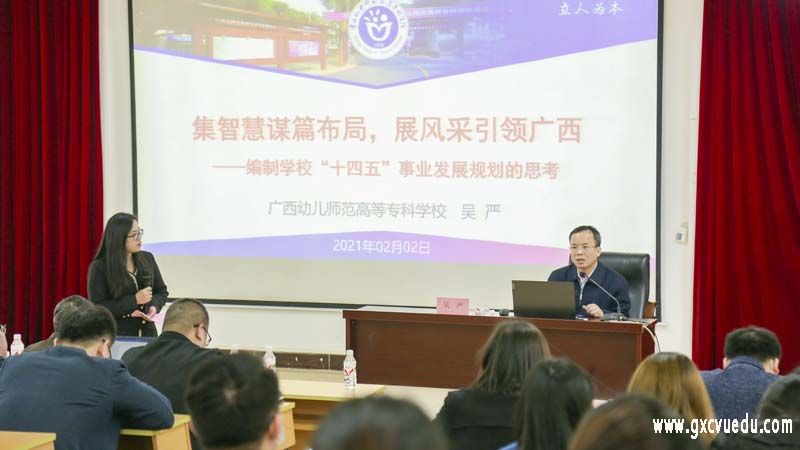 为规划好本科职业大学发展蓝图,做好学校“十四五”事业发展规划编制工作,2月2日,我校在空港校区四号教学楼阶梯七教室开展主题为“集智慧谋篇布局,展风采引领广西——编制学校“十四五”事业发展规划的思考”培训讲座。广西幼儿师范高等专科学校质量管理办公室主任吴严教授担任主讲人,学校质量管理办公室主任陆美芳副教授主持。