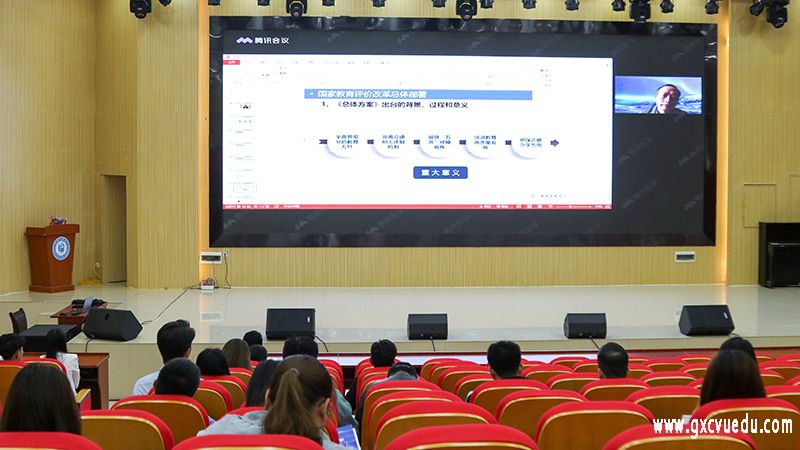 4月29日,我校为深入贯彻落实党的教育方针,全面深化职业教育改革,教师分别在崇左校区教育学院演奏大厅、空港校区厚学楼2203教室观看职业教育改革实践专题网络直播讲座。主讲人为全国职业教育和终身教育政策专家汪忠明。