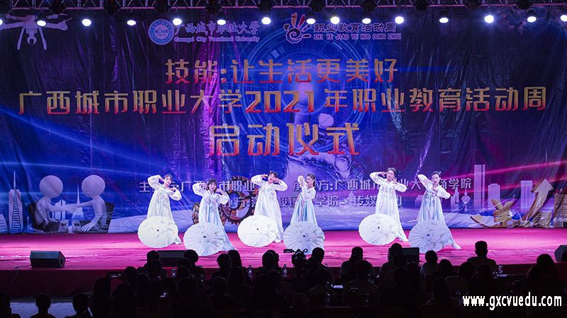 崇左校区各个学院带来精彩的技能表演。校团委带来舞蹈《领尚》点燃舞台,瞬间将现场气氛点燃。商学院的《职业礼仪秀》向我们展示了专业的职场礼仪与周到的服务。信息工程学院的《VR世界》又将我们带入另一个情景,领略祖国科技的强大。