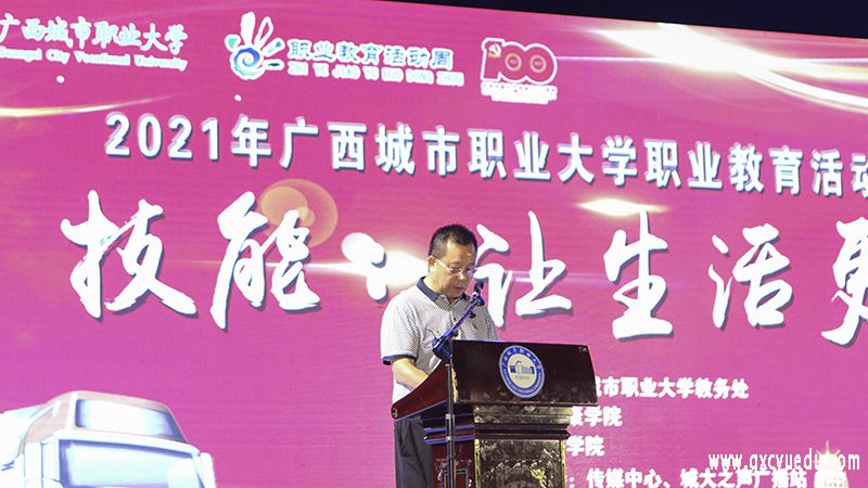 为贯彻落实全国职业教育大会精神,培养更多高素质技术技能人才,展示教育教学成果,我校于5月24日晚分别在崇左校区露天广场和空港校区万物生涧源广场开展2021年职业教育活动周启动仪式。本次职业教育活动周主题为“技能,让生活更美好”。学校党委书记伍鹏志、校长李中华分别出席此次活动仪式并讲话,各学院师生参加启动仪式。