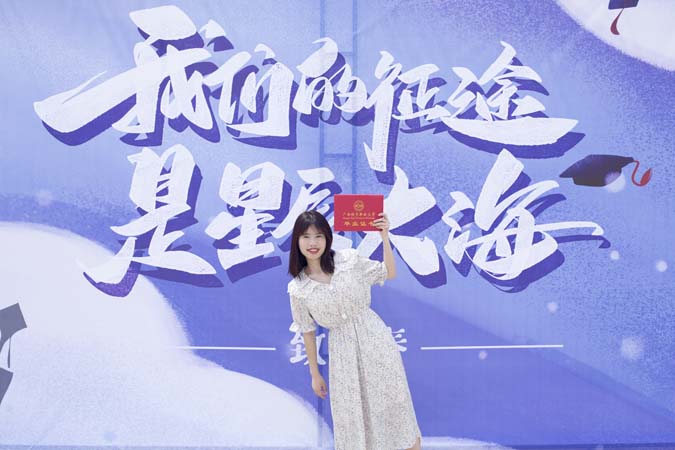记者采访到2021届毕业生莫芸雅。她说:“在学校没有实现的事,毕业工作以后更要继续努力去实现,那些年没有看完的书,在毕业后的日子里争取不留遗憾。很荣幸,在城职大遇到了那么多优秀且不停优秀的朋友,感谢城职大这个美好和谐的家园,给我们带来那么多惊喜和幸运。希望学弟学妹们能够珍惜校园时光,利用大学时光做有意义的事。最后,祝愿城职大越办越好!”