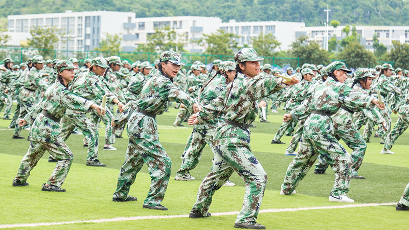 接下来是由广西绿盾国防教育基地主任陆俊余和空港校区军训总教官卢培刚分别作总结。他们表示,军训是一个成长的阶梯,也是一个崭新的课堂,通过军训,同学们进一步强化了国防意识,在一定程度上增强了体质,磨练了意志,培养了团结协作精神,形成了良好的纪律观念。希望同学们继续发扬“不怕苦、不怕累”的两不怕精神,在今后的学习、生活、工作中,再接再厉,再续辉煌。