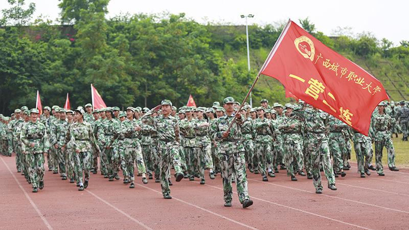烈火骄阳,晒不尽城职大学子精神飞扬;骤雨狂风,摇不动中华儿女笔挺脊。历经风雨,为期14天的军训生活到今天截止,2021级新生将接受检阅,展示刻苦军训的成果。9月13日上午,我校在崇左校区、空港校区田径运动场举行2021级军训阅兵仪式暨总结表彰大会,出席本次大会的有党委书记伍鹏志、校长李中华以及各学院、各部门领导老师及2021级全体新生。
