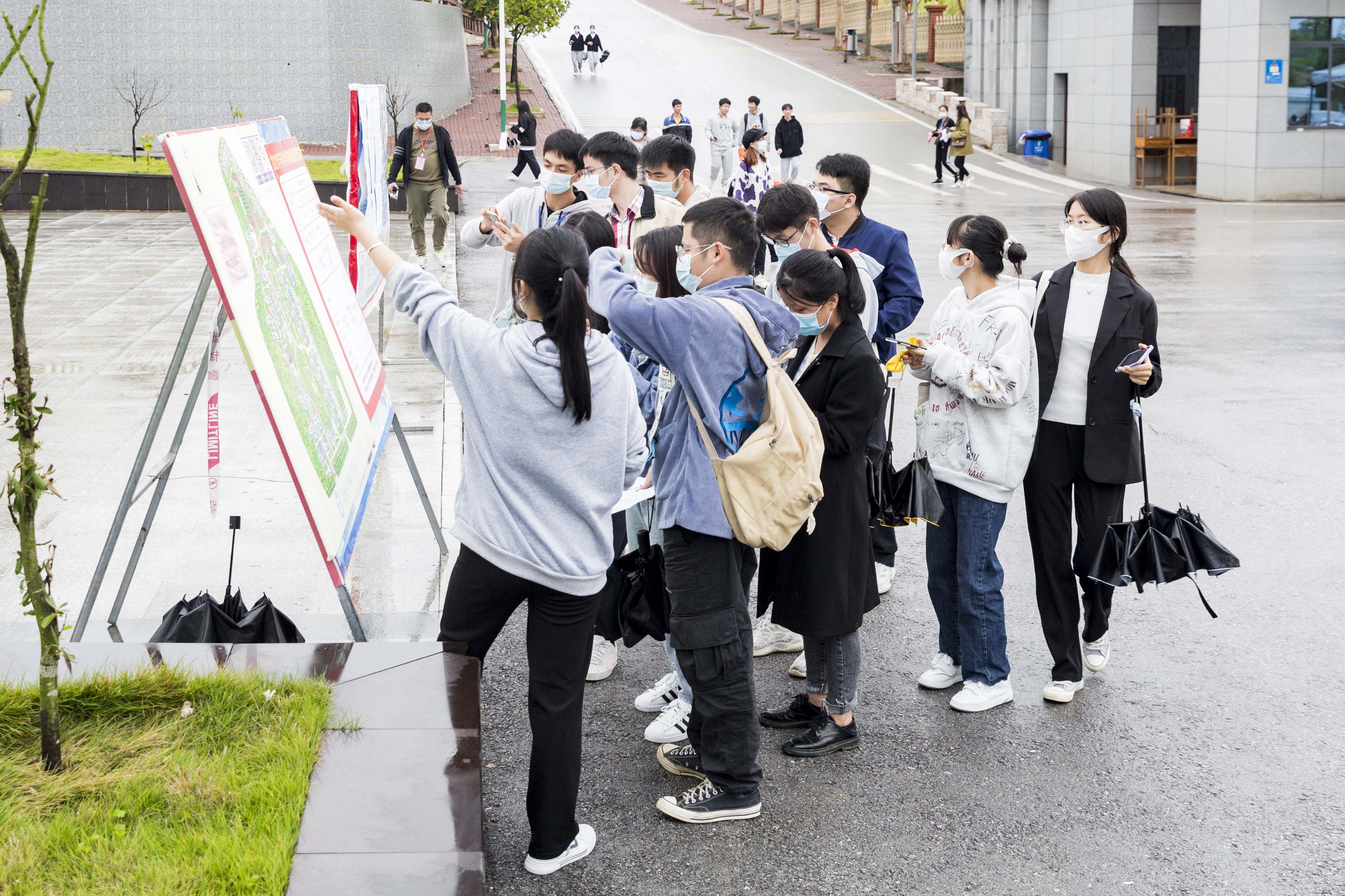 工作人员为考生指导考场位置