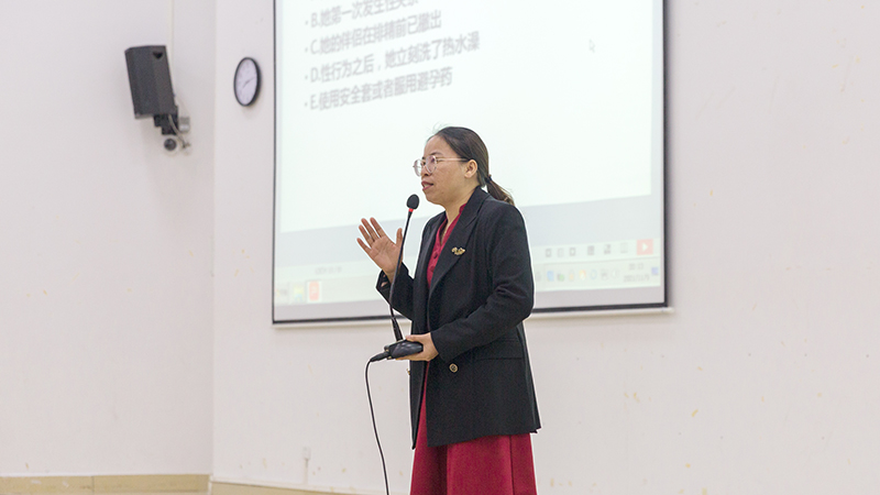 柳老师以七个关于性知识的小问题切入讲座,全面了解同学们对于性的认知。接着柳老师从大学生恋爱观、性无知的危害、性的安全措施、妊娠的诊断及终止方法、性病及其防御措施等五个方面,结合现实生活中的案例,让同学们深刻的认识到生理健康的重要性,解答了同学们对于性知识的疑惑,帮助同学们树立起正确的恋爱观。同时,柳老师还提到,如果发生意外,一定要相信父母老师,及时处理才是最正确的做法。
