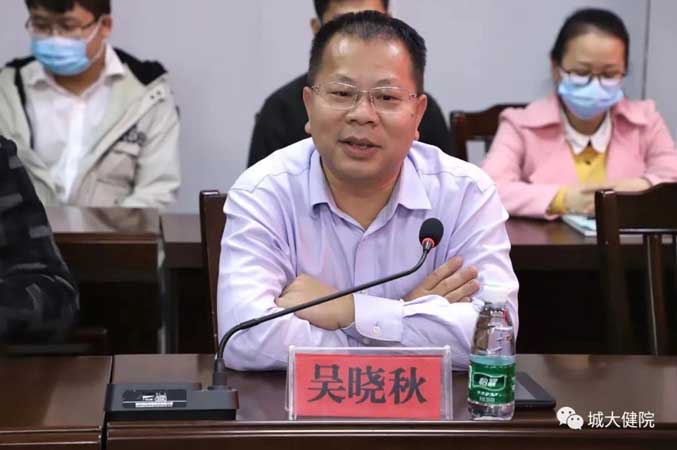随后,吴晓秋院长表示,崇左市人民医院是一个正在向高质量发展迈进的三甲医院和A级教学医院,高度重视与我校的合作,想要大力做好临床教学工作,提高科研水平,期待在接下来的合作中能取得更多更大的实效,共同进步,努力为人民谋幸福!