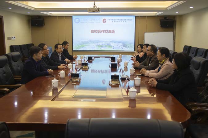 11月24日下午,广西中医药大学附属瑞康医院空港院区扶绥县中医医院院长梁春才,副院长朱永苹、医学博士曹步清等一行5人到我校空港校区进行交流考察。校长李中华,健康学院院长莫中凯等领导老师热情接待了前来交流的人员。