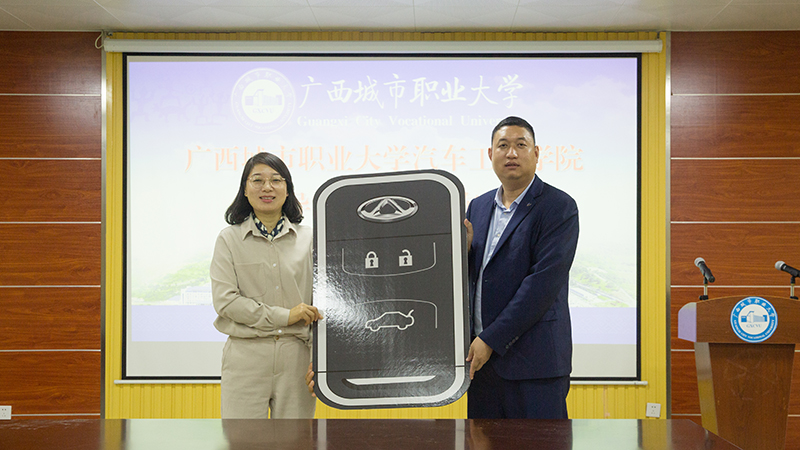 座谈会上,汽车工程学院教师与奇瑞集团领导就学校、企业未来共同发展方向、校企合作融合方案、课程项目研发、学生就业稳定过度等问题展开深度讨论,达成了共同开发适用于汽车技术技能工程师的课程研发、投入创建电动汽车构造实训基地、我校输送毕业生到奇瑞集团顶岗实习的待遇等一系列内容的共识。奇瑞集团为进一步扩大新能源汽车创新研发与改进的队伍,赠送三辆汽车给汽车工程学院师生作研究。诸葛桥忠院长与后晓丽总监进行赠车交接仪式。
