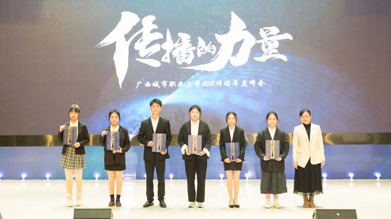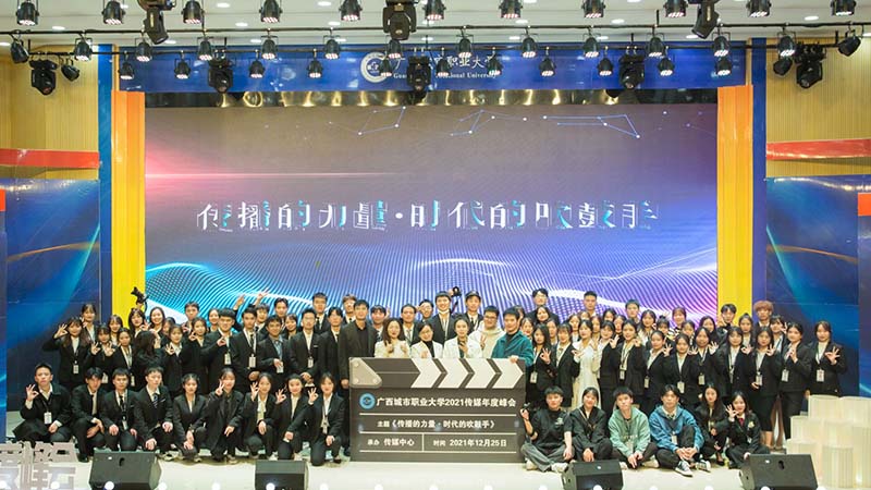 为盘点2021年的宣传工作,表彰先进、激励后进,12月25日晚,我校传媒中心在崇左校区教育学院演奏大厅举办主题为“传播的力量·时代的吹鼓手”2021年度传媒峰会。出席本次峰会的领导有学校党委书记伍鹏志,宣传部部长、传媒中心主任黄良佳,商学院院长蒙振海,汽车工程学院院长诸葛桥忠,信息工程学院党总支书记赵容秀,智能工程学院党总支书记余金永等领导老师,及各学院团委宣传科师生代表。