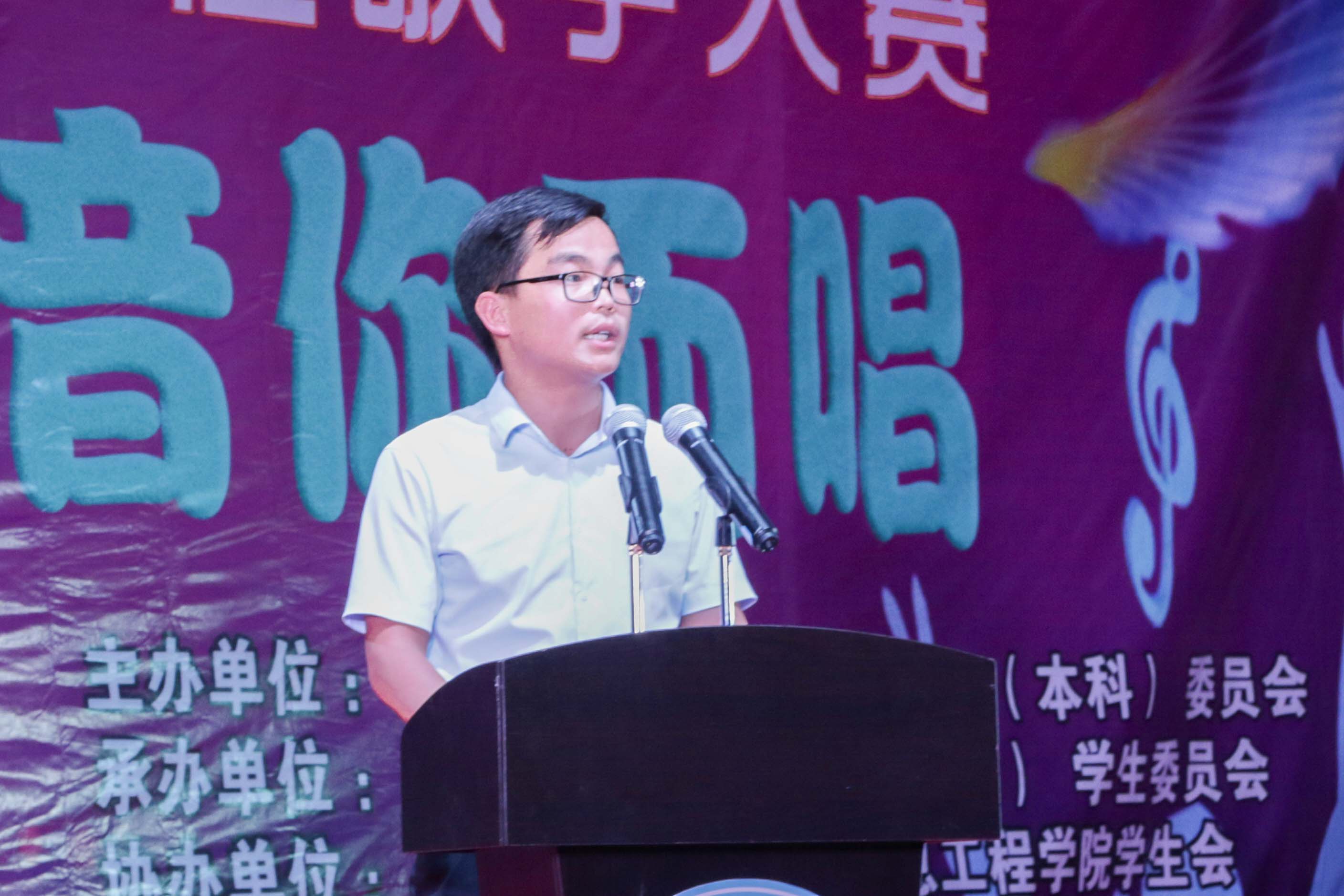 比赛开始前,由杨成旺老师为本次比赛致辞:“希望同学们在比赛过程中,以自己嘹亮的歌声,甜美的音符,抒写出沸腾的青春和火热的年华,展现出城院莘莘学子们不一样的风采。最后,预祝比赛取得圆满成功。”
