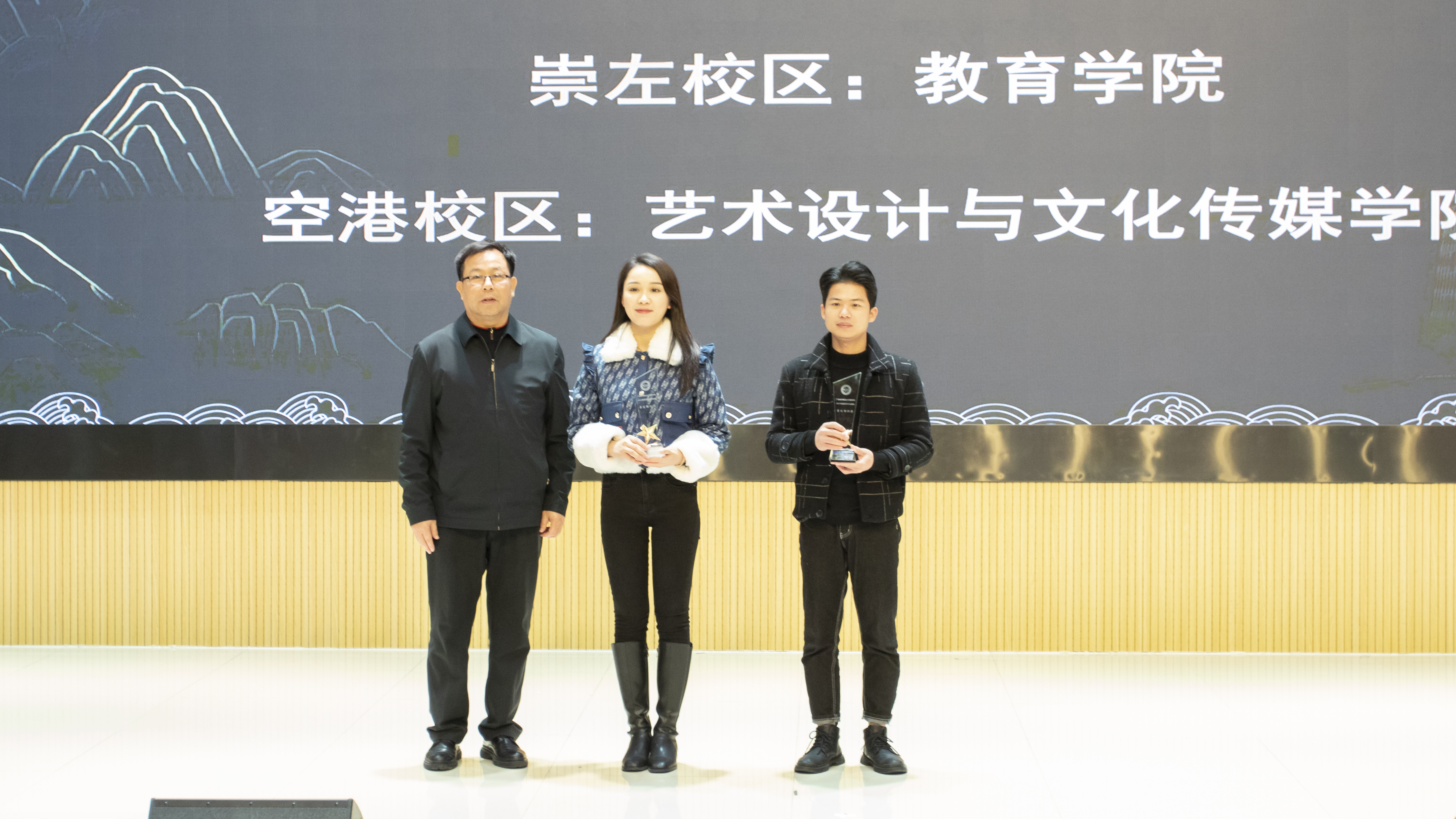 他们用饱满的热情让校园文化流动成风,他们用积极的态度传播校园文化,校园文化优秀讲解员梁杰媚同学为我们带来精彩的校园文化讲解。接着,黄艳华老师为荣获“校园文化传播者”称号的老师们及《诗与远方》栏目“优秀配音员”、“优秀演员”学生代表颁奖。汽车工程学院学工办主任孙晓宇老师分别为获得“校园文化活动优秀工作者”、“校园文化宣传之星”、”校园文化优秀编辑”称号的优秀代表颁奖。教育学院和艺术与文化传媒学院以强大的号召力和组织力获得图书馆系列文化活动的最佳组织奖,由李中华校长为他们颁奖。