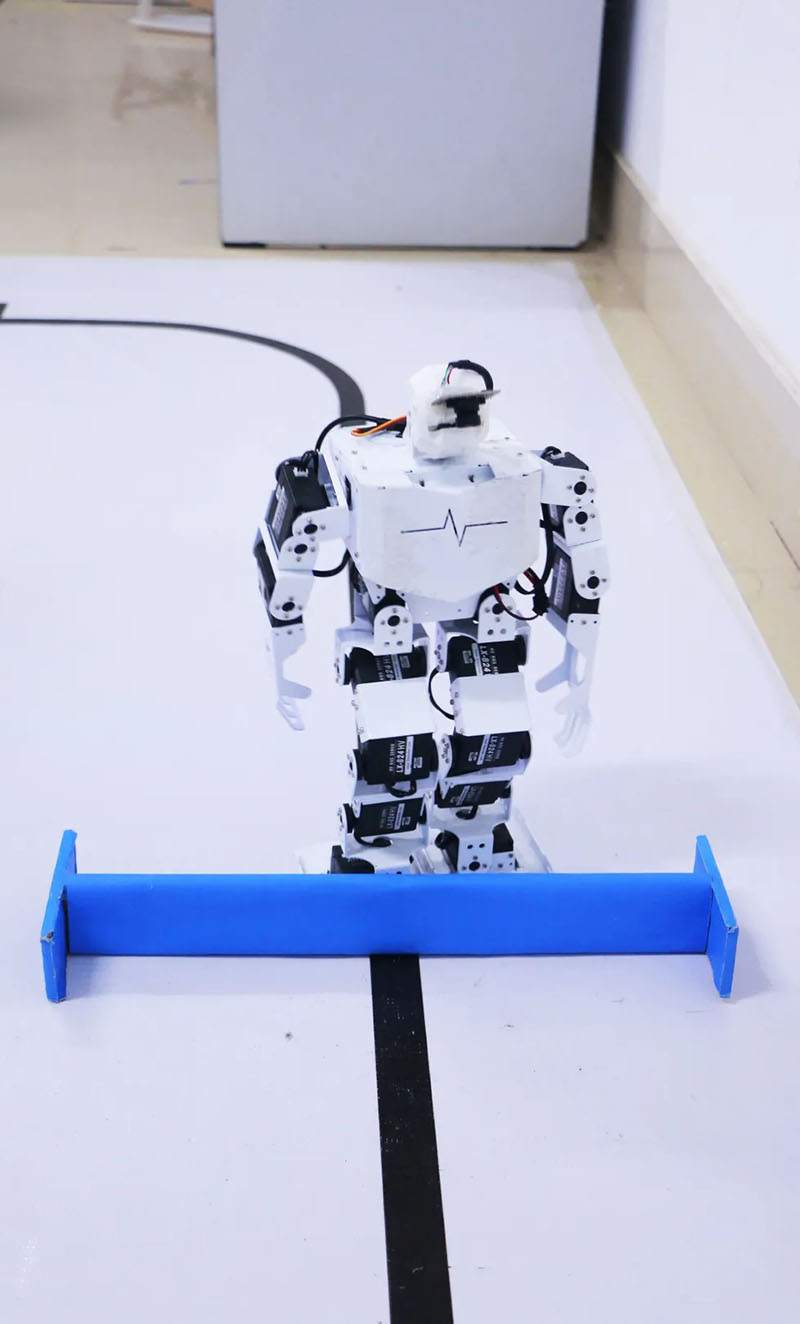 其中,参加第一赛道“IA视觉人形机器人大赛”的秦禄其、韦淋芳、钟永维三位同学在甘新泉、孙振保老师的指导下,不断的对参赛作品进行修改,反复试验,一次次的失败并没有使他们放弃,而是在挫折中不断前进。