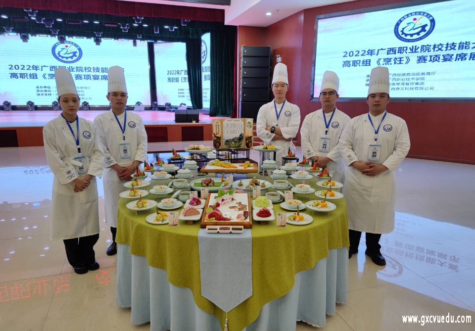 4月14至16日,我校管理学院烹饪工艺与营养专业吴志良、岑佳亿、覃嘉佳等10位学子在2022年广西职业院校技能大赛中,荣获高职组《烹饪》项目团体赛二等奖两项。广西职业院校技能大赛《烹饪》赛项为团体赛,参加此次大赛的职业院校共11所包括17个参赛队,大赛在广西职业技术学院举行。