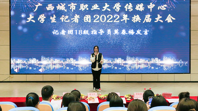 为传承社团组织精神,继续做好校园文化宣传工作,5月17日晚,崇左校区传媒中心大学生记者团在15区报告厅举办换届大会。出席本次大会的有传媒中心副主任李宁宁,传媒中心大学生记者团指导老师黄钦锋、莫世科、康玉萍、张雨思,社团学生代表以及传媒中心大学生记者团全体成员。