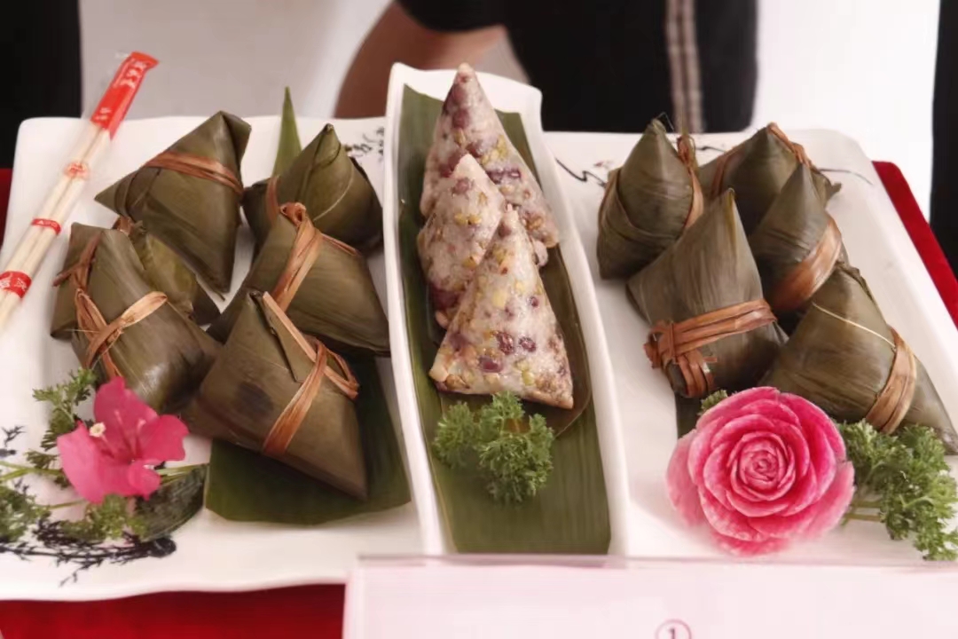 参赛选手制作的各色各样的粽子