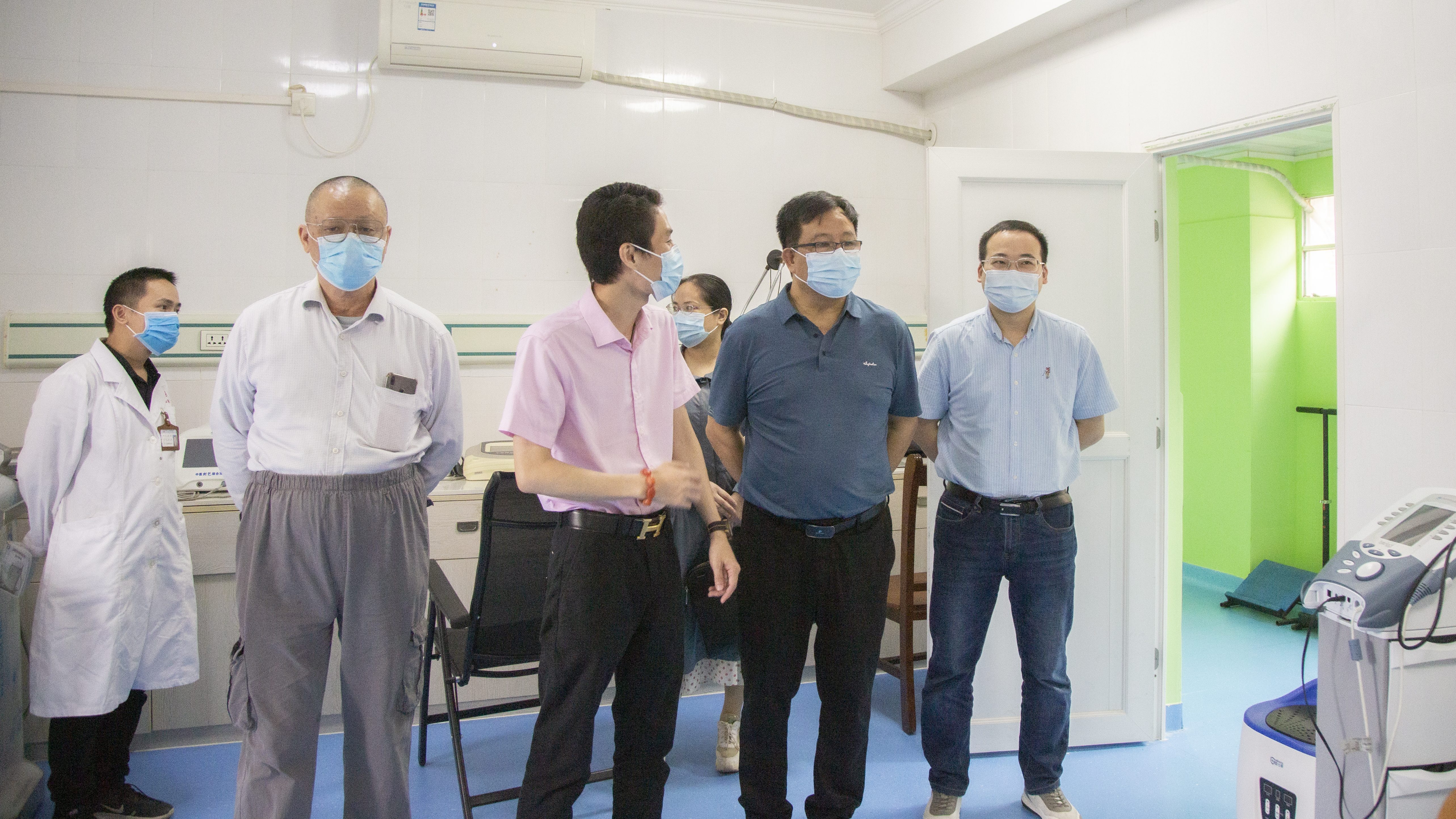 刘涌彪院长带领我校领导老师参观医院的医疗设备、环境等,介绍了医院的科室设备,简述了这届实习毕业生在实习的轮岗各个科室实践的相关情况。