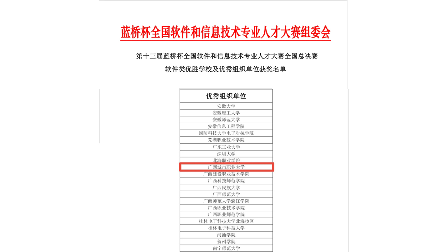 近日,蓝桥杯大赛组委会公布第十三届蓝桥杯全国软件和信息技术专业人才大赛总决赛获奖名单,我校在大赛中荣获“优秀组织单位”称号。