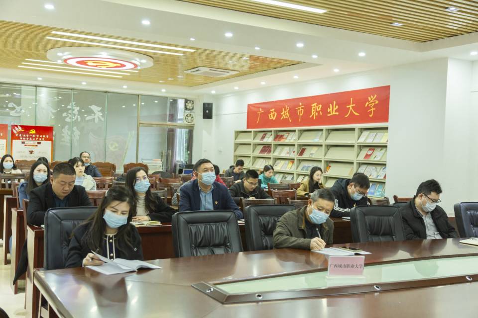 12月8日,我校参加全区清廉学校建设工作视频推进会,会议在尚美楼三楼党员活动室设分会场。会议深入学习宣传贯彻党的二十大精神,认真学习贯彻习近平总书记“五个更大”重要要求和关于教育的重要论述,深入贯彻落实习近平总书记视察广西“4·27”重要讲话和对广西工作系列重要指示精神,贯彻落实清廉广西建设工作现场推进会精神,总结交流经验做法,就深入推进清廉学校建设工作进行安排部署。校党委书记伍鹏志、各学院和机关党总支书记、负责人参加本次会议。