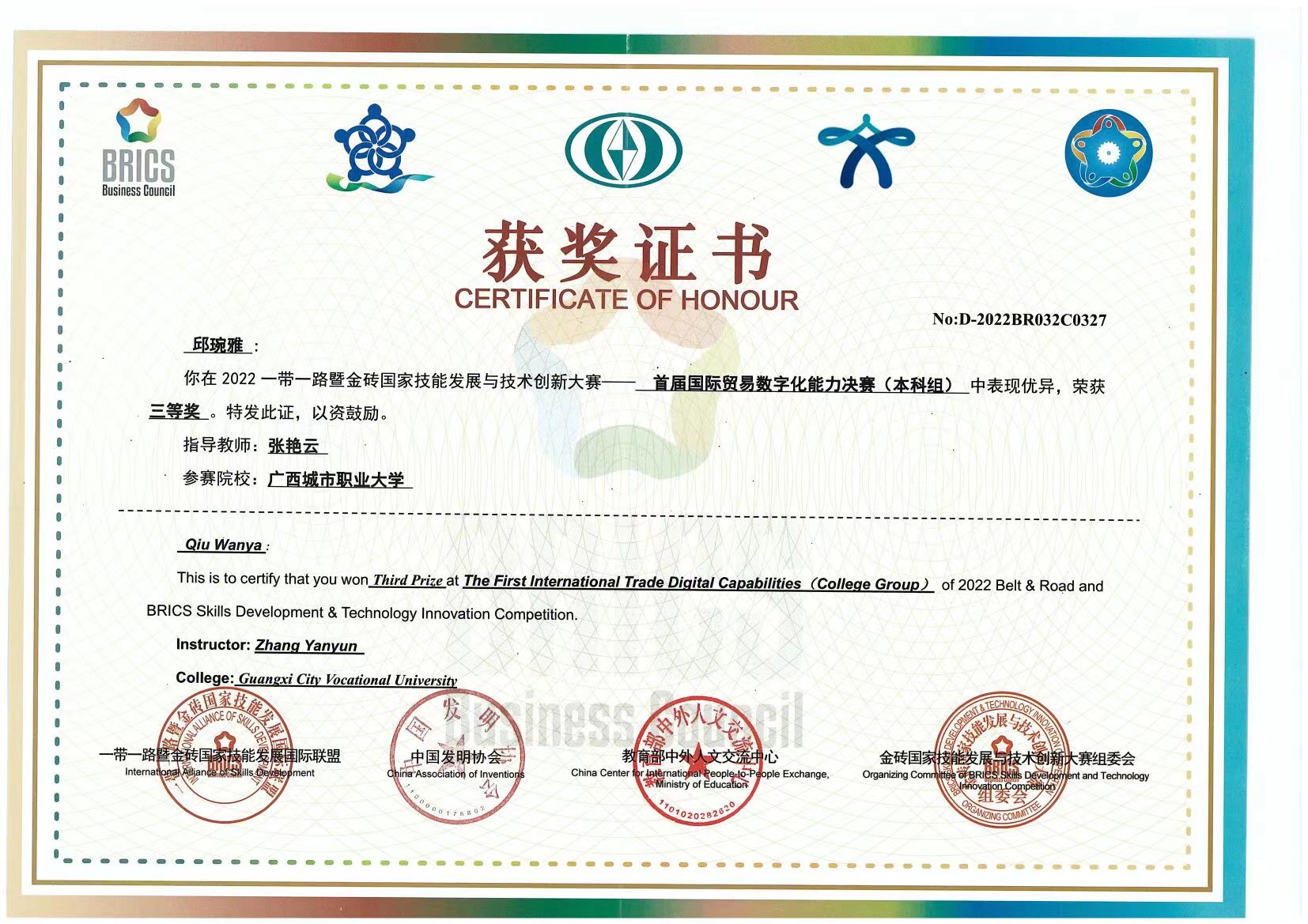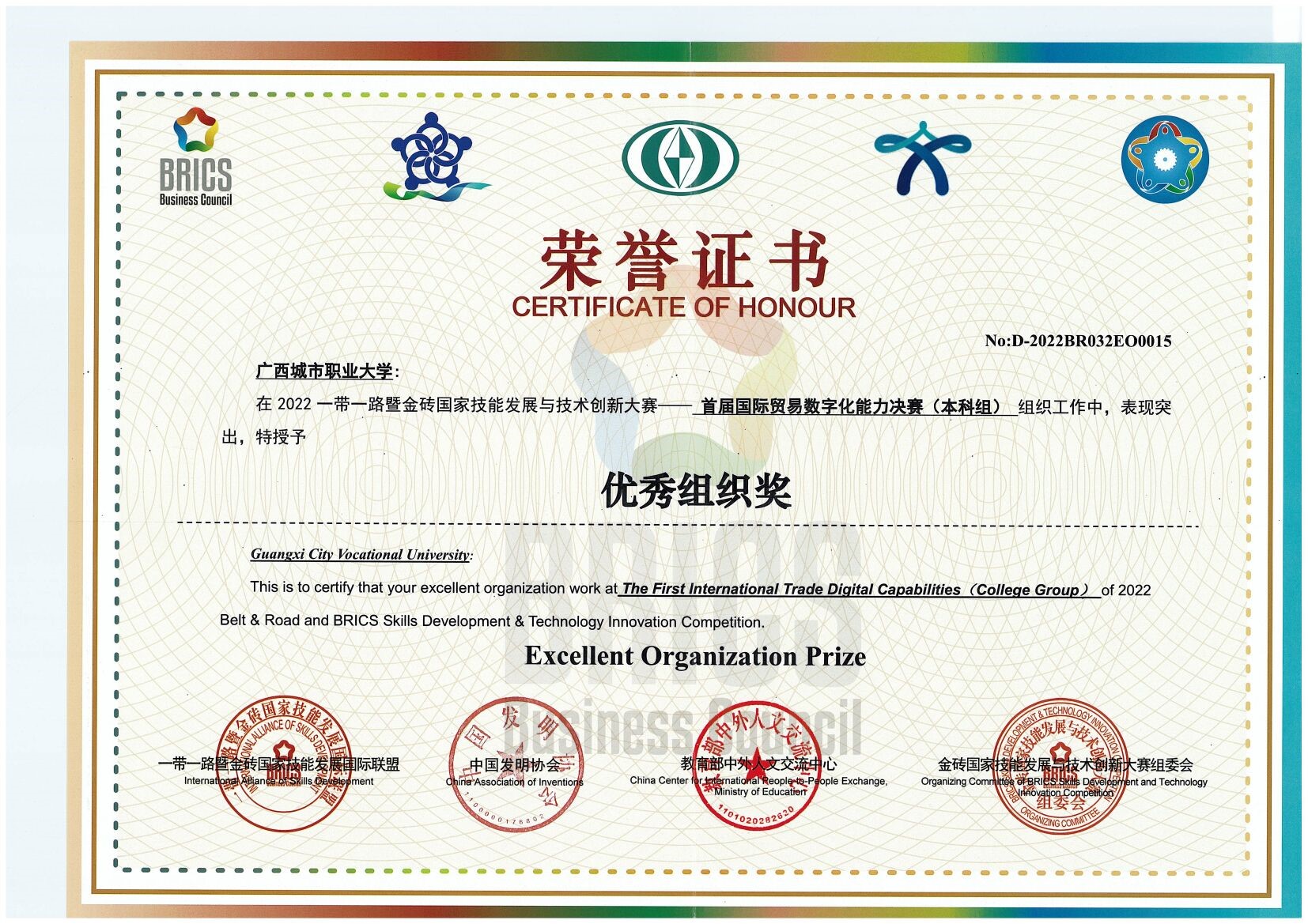 近日,由金砖国家工商理事会中方理事会、一带一路暨金砖国家技能发展国际联盟、中国科协一带一路暨金砖国家技能发展与技术创新培训中心、中国发明协会、教育部中外人文交流中心、联合主办的2022一带一路暨金砖国家技能发展与技术创新大赛之首届国际贸易数字化能力决赛(本科组)采取线上方式进行。