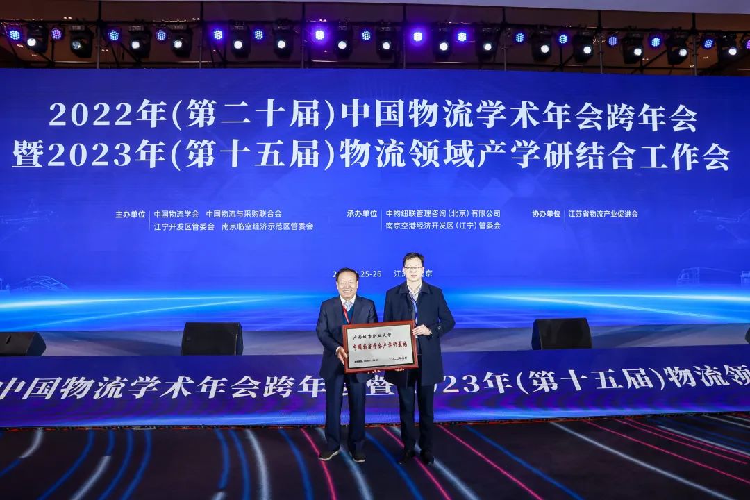 中国物流学会、中国物流与采购联合会主办的第二十次中国物流学术年会于2月24日至26日在江苏南京召开。会上,中国物流学会公布了新一批产学研基地名单,聘任了新一批特约研究员,并颁发产学研基地牌匾及特约研究员聘书。我校荣获第七届第一批“中国物流学会产学研基地”,同时管理学院唐臣院长受聘为中国物流学会常务理事、第七届特约研究员。
