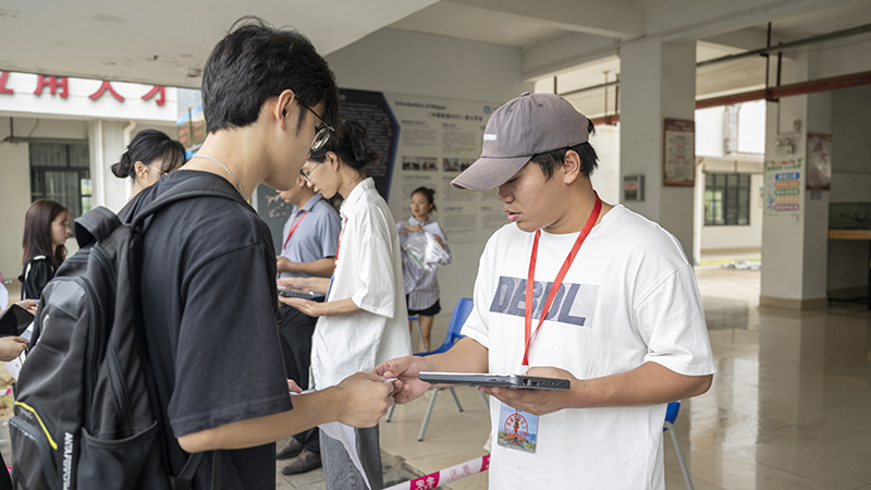 在全校各工作人员的共同努力下,我校圆满完成2023年下半年全国中小学教师资格证考试。考试结束后记者采访到我校2020级国际经济与贸易专业本科2班的考生梁茵梅,她说:“这是我第二次参加小学教资考试,我在考前已经备考一个多月了,虽然我在考试过程中有些紧张,但我相信这次一定可以通过考试。”