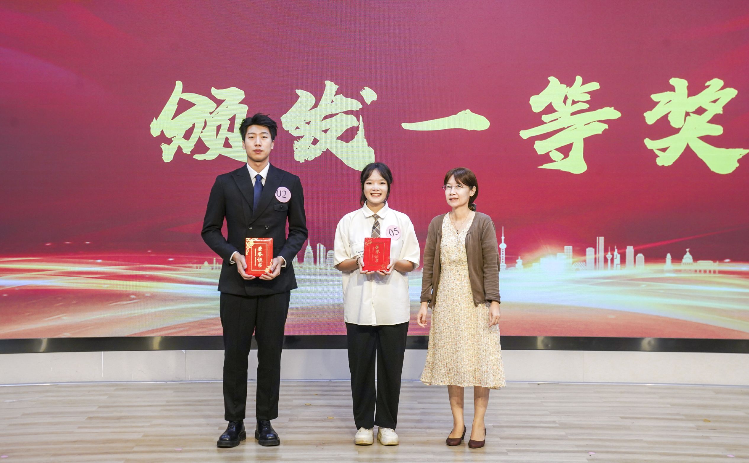 领导老师为获得一等奖的参赛选手颁奖