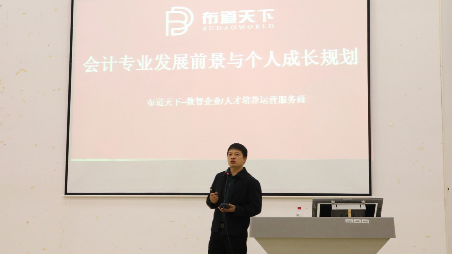 本次讲座邀请了布道天下信息产业有限公司创始人袁开先生和人力行政总监李爱秒女士作为演讲嘉宾,以“数智经济会计专业人才发展前景及个人成长规划”为主题,从行业认识、自我认知、职业定位、职业规划和就业准备等方面分享了他们对于数智经济下大数据与会计专业发展前景的独到见解,同时还对未来的趋势进行了精彩的展望。
