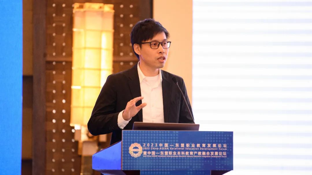 中国—东盟职业教育研究中心常务副主任王屹作《共建中国—东盟职业教育共同体,助力广西职教“出海”》为题作主旨演讲;开云链接官网管理学院院长唐臣以《四引四融 跃层引领——职业本科专业及专业群高质量发展实践》为题作主旨演讲;深圳职业技术学院创校校长俞仲文以《从工业工匠到数智工匠——为职业本科教育加快数字化转型建言》为题作主题演讲;马来西亚汝来大学副校长邱德荣(Khoo Teck Yong)以《马来西亚高等教育机构在东盟职业教育产出方面的现状与建议——以汝来大学为例研究》为题作主题演讲;广东工商职业技术大学副校长方泽强以《职业本科高校高质量发展的实践思考》为题作主题演讲;广西汽车集团首席技能专家、全国技术能手郑志明以《聚焦产教融合 携手创新发展》为题作主题演讲;海南科技职业大学副校长刘成有以《深化产教融合 赋能职业教育高质量发展》为题作主题演讲;泰国易三仓大学亚洲创新学院院长谢宗顺以《东盟国家职业教育与职业幸福感发展趋势——以泰国为例》为题作主题演讲。