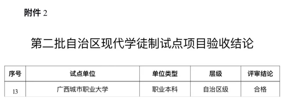 近日,根据《自治区教育厅关于公布第一批和第二批自治区现代学徒制试点项目验收结论的通知》(桂教职成〔2024〕3号),我校工业机器人技术专业作为现代学徒制试点项目顺利通过自治区教育厅验收。