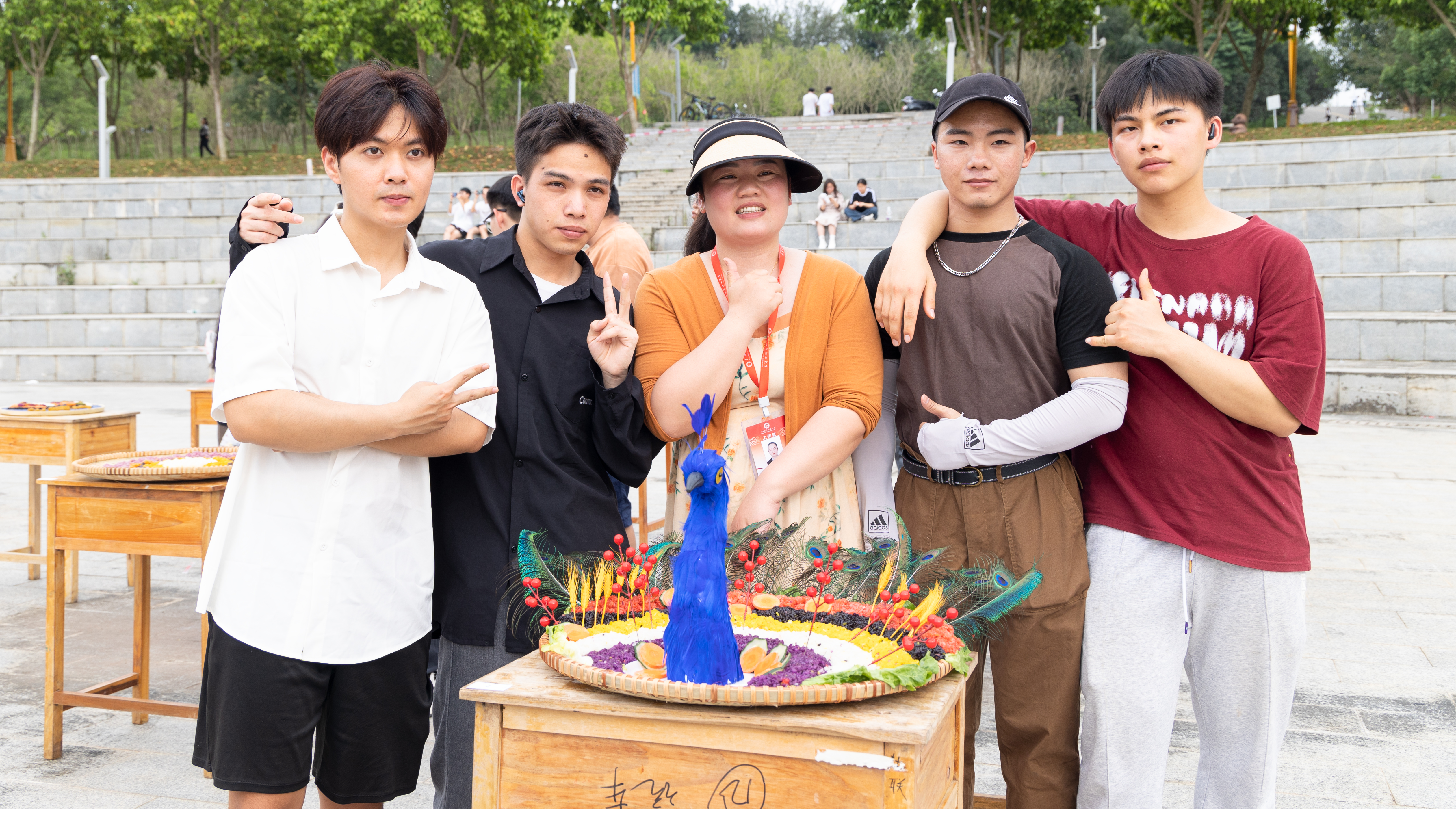 在美食活动比赛中,师生们发挥创意,制作了五色糯米饭创意拼盘和柠檬鸭等非遗美食。现场观众品尝后纷纷投票,评选出最受欢迎的作品。此外,传统手工艺体验区域也备受青睐,学生们通过制作壮族挂画、纽扣粘贴画等民族特色手工艺品,锻炼了动手实践能力,加深了对民族文化的热爱。
