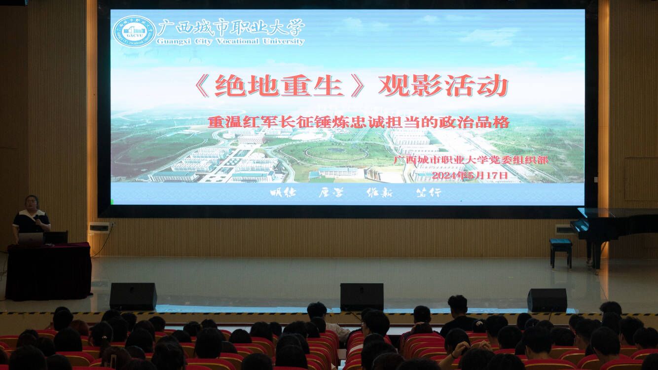 为深入学习贯彻习近平新时代中国特色社会主义思想,全面贯彻党的二十大和二十届二中全会精神,贯彻落实习近平文化思想和习近平总书记对广西重大方略要求,5月17日,我校在崇左校区演奏大厅组织观看重大革命历史题材电影《绝地重生》。
