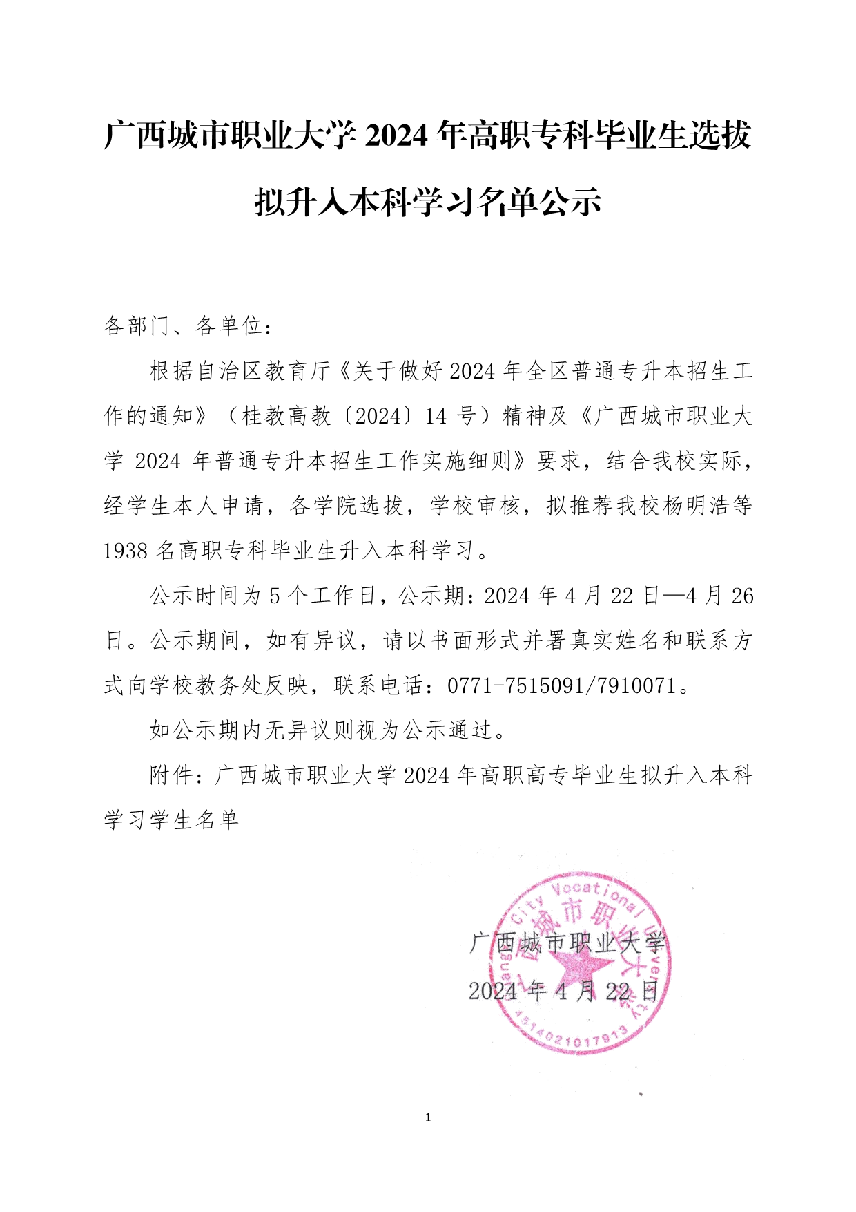 开云链接官网2024年高职专科毕业生选拔拟升入本科学习名单公示